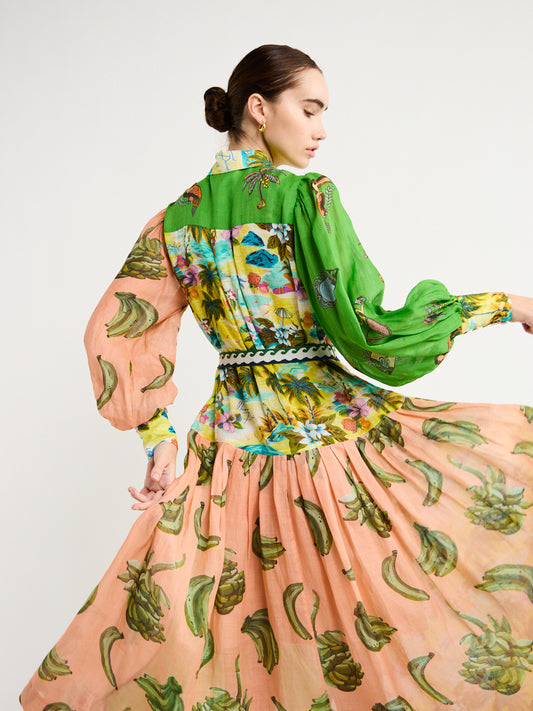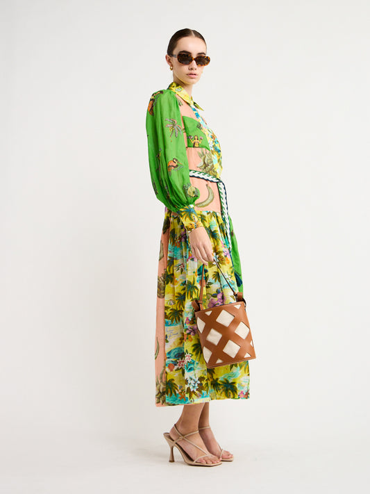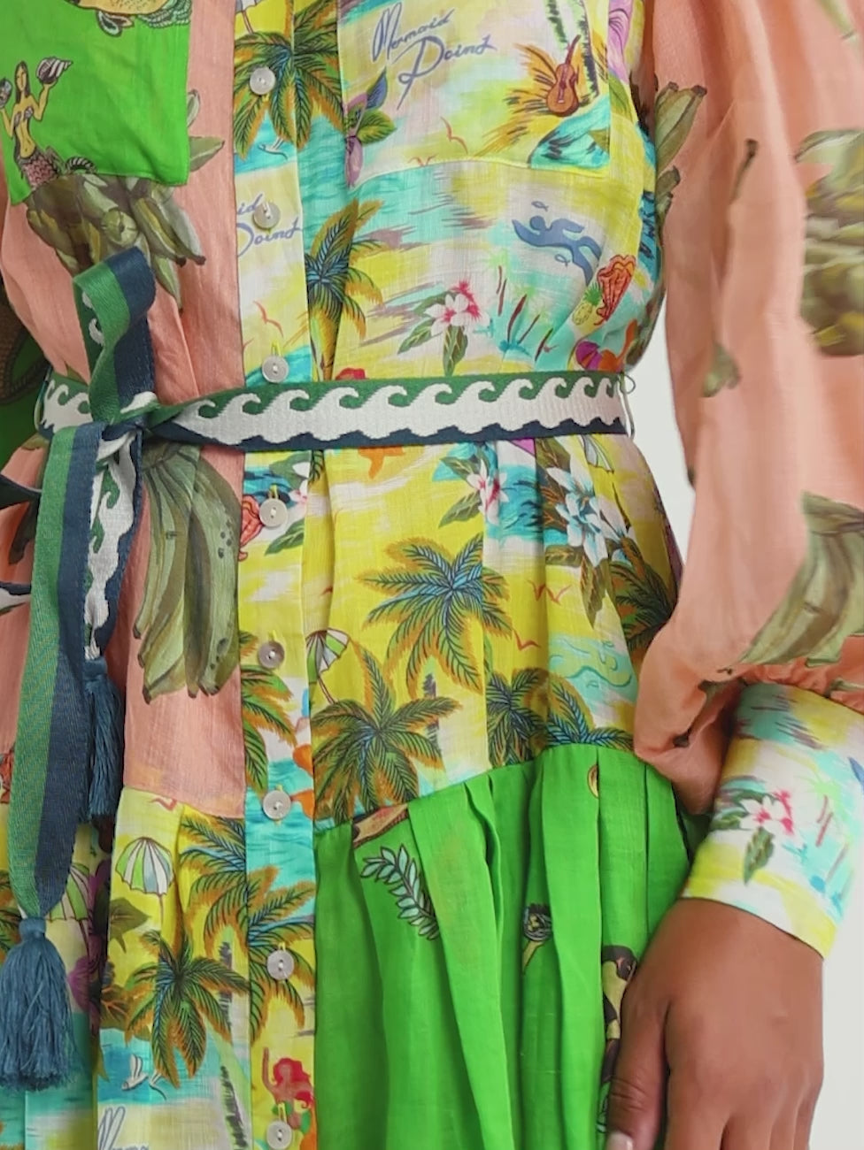 Indulge in timeless style with the luxurious ALÈMAIS Holiday Patchwork Shirtdress.