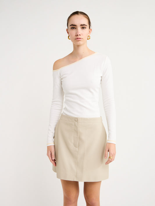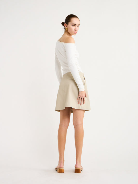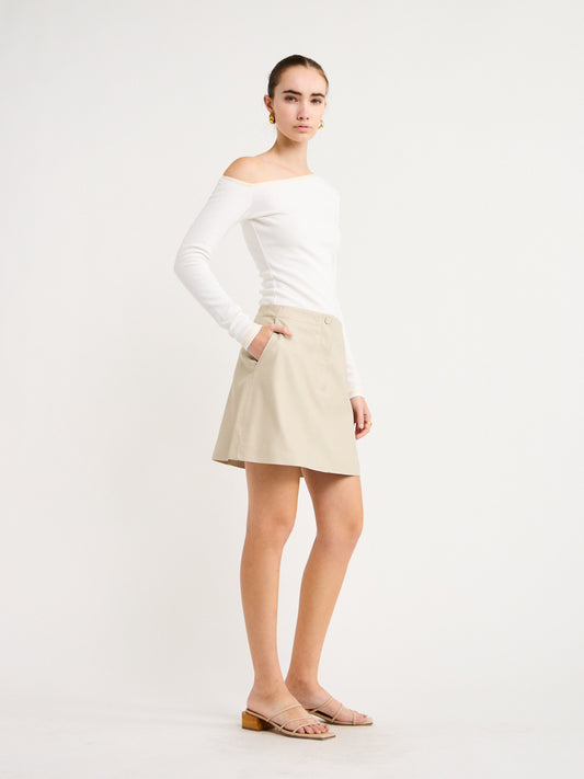 The Elka Collective Bobby Skirt in Stone is a timeless classic that offers a smart, versatile look.