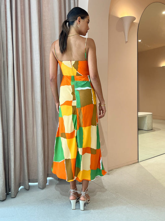 Coveted for its abstract retro-inspired print and easy-to-wear silhouette, this midi dress is the perfect addition for weekend getaways, holiday escapes and off-duty dressing.
