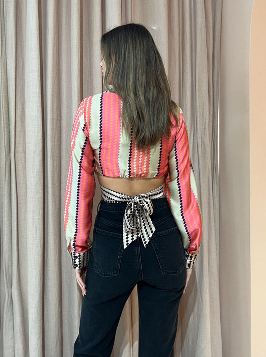 Hansen and Gretel Sofia Cropped Shirt in Multi Diamond