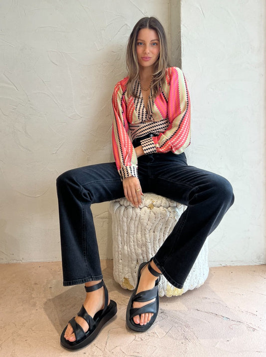 Elevate your mix and match looks with the Hansen & Gretel Sofia Cropped Shirt in Multi Diamond.