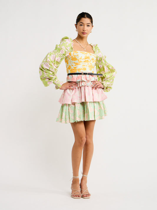 Coveted for its fitted waist and tiered ruffle mini skirt, Coco girls are coveting this mini for birthday celebrations, garden parties and wedding festivities.