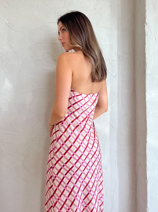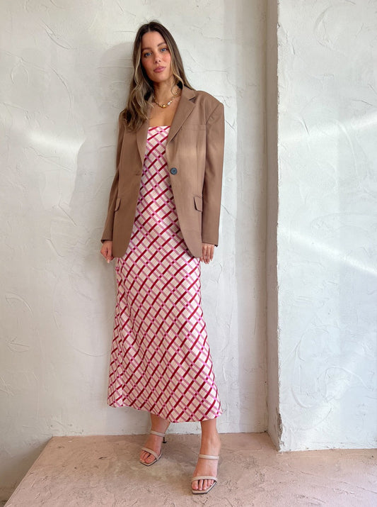 The Ownley Augustine Bias Strapless Dress in Checker is a timelessly elegant choice for any special occasion.