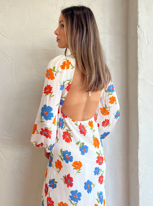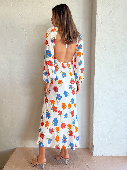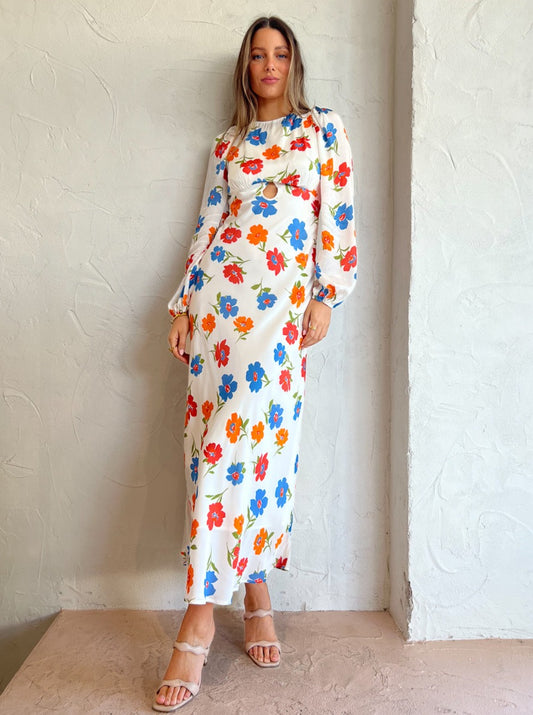 Ownley Bethenny Bias Midi Dress in Ivory Floral