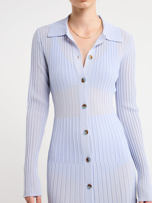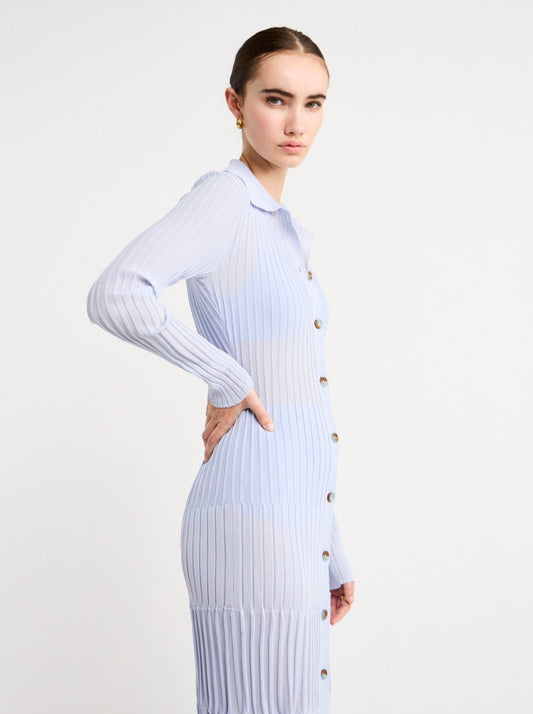 Sir Eva Buttoned Midi Dress in Ice Blue