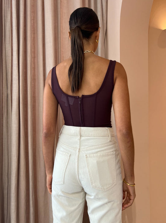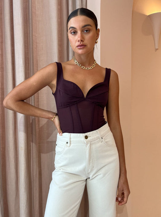 Bring burgundy hues into to your Coco collection with the Theta Bustier in Oxblood by Viktoria & Woods
