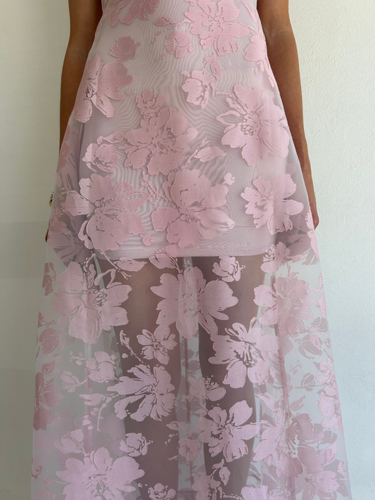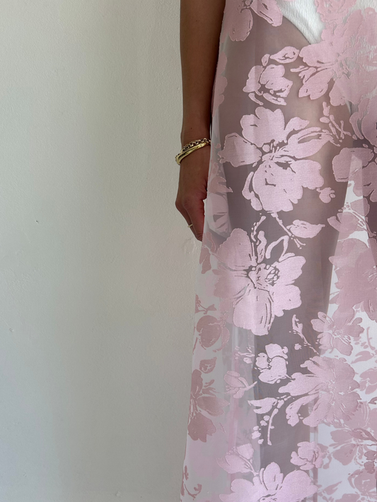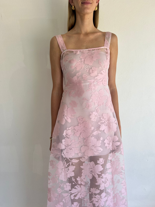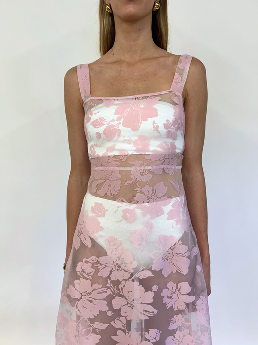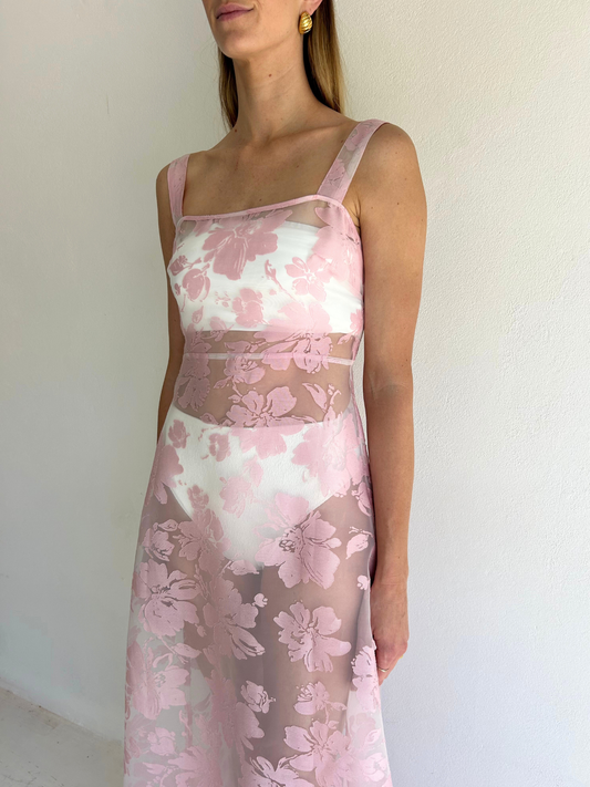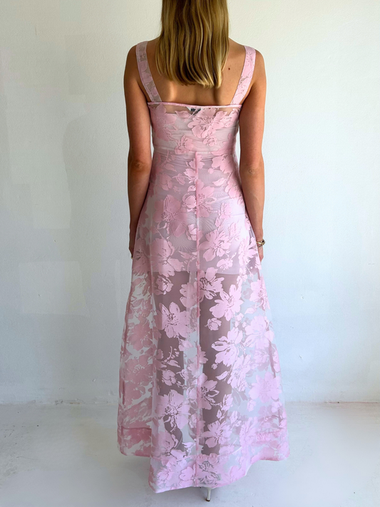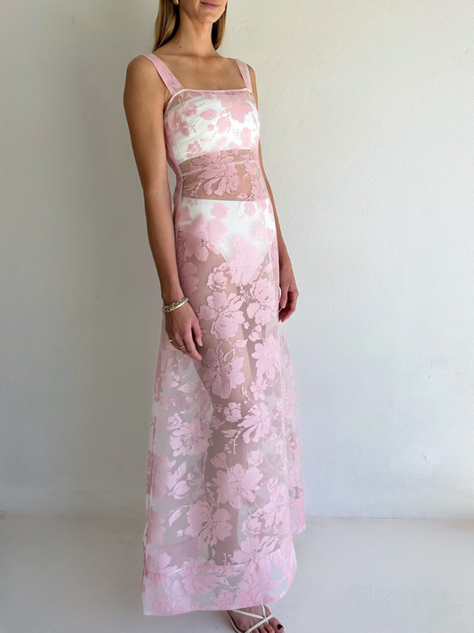 The Goldie Maxi Dress in Marshmallow a square neckline, wide shoulder straps and an A line silhouette in a light weight organza.