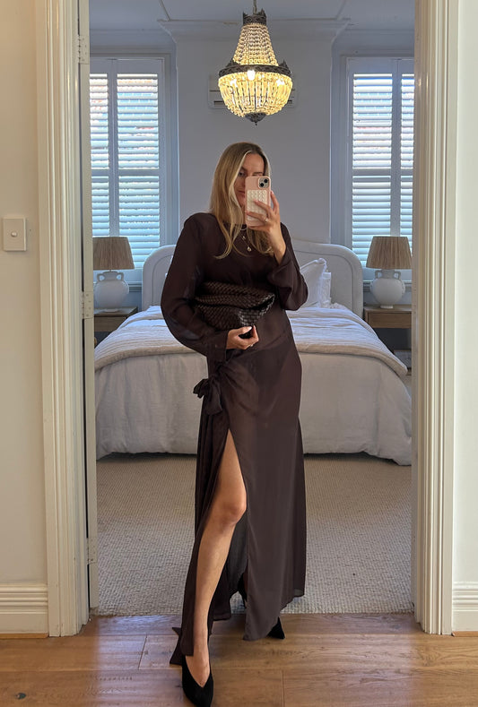The By Nicola Elodie Maxi Dress in Chocolate is a new style to Coco & Lola.