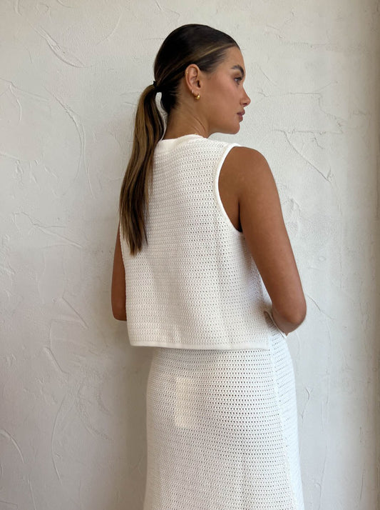 Refresh your modern staple tops with the Aubrey Knit Tank paired back with the Aubrey Knit Skirt in White for an effortless off-duty look.