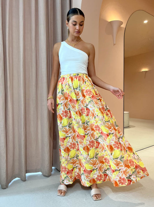 Exclusive to Coco, By Nicola's Ahoy Maxi Skirt in Citrus Print will add bright tones and sweet flavour to your Spring Summer wardrobe.