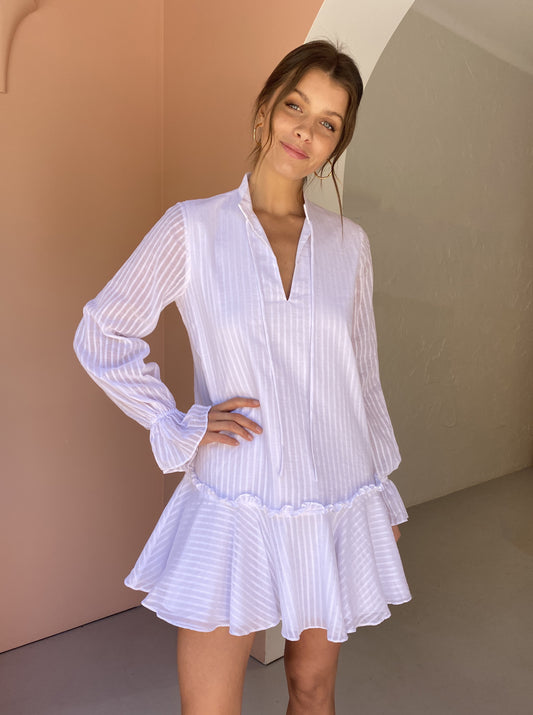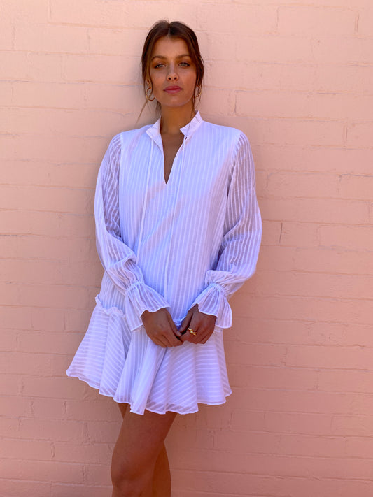 The exclusive By Nicola Danse L/S Shift Mini Dress in White is a Coco girl favourite.