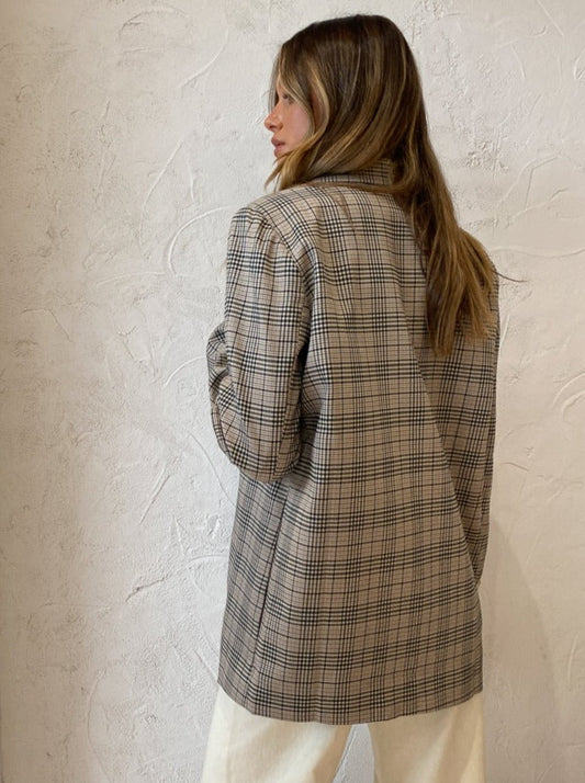 By Nicola Dionne Oversized Blazer in Black Plaid
