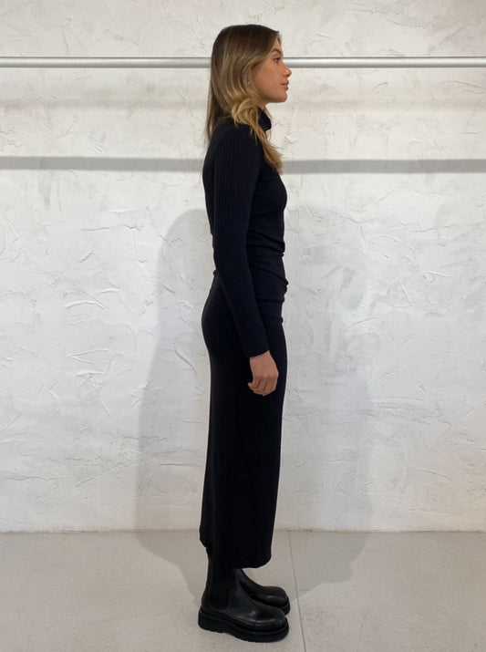 By Nicola Fleur Ribbed Maxi Dress in Black