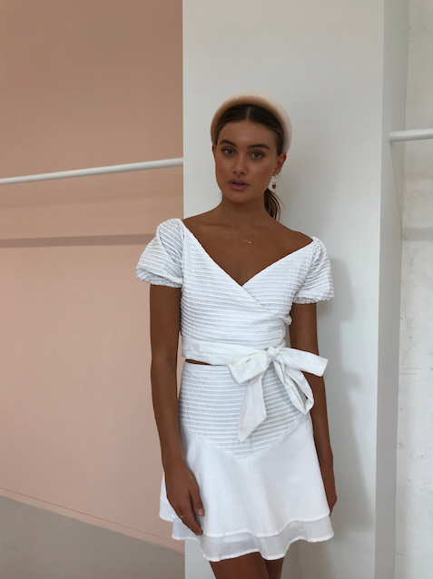 The exclusive By Nicola Gi Gi top is a classic wrap top that is slightly cropped in length with puff sleeves.
