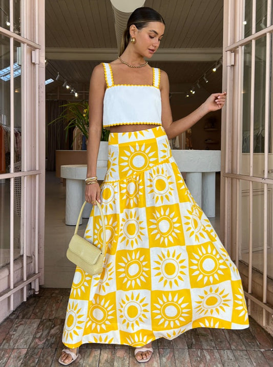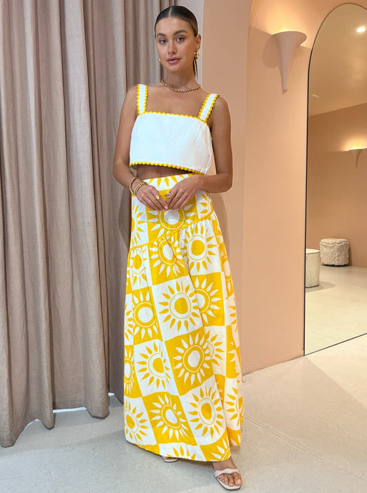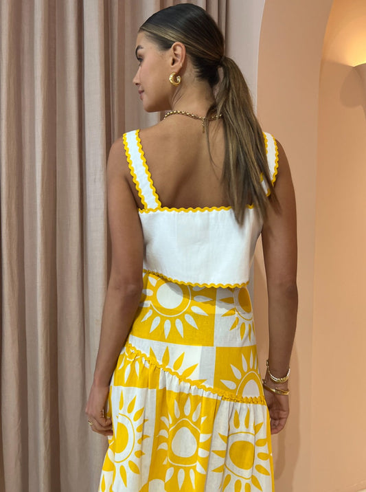 Adored for the playful detailing, this top is the perfect pairing for the Exclusive Sol Maxi Skirt in Large Sol Print for any special occasion in your Coco calendar.