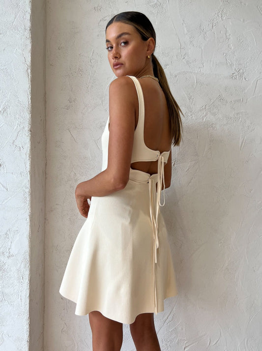 Clea’s Lucy Crepe Mini Dress in Butter is a sweet mini moment laying the formation for modern elegance.