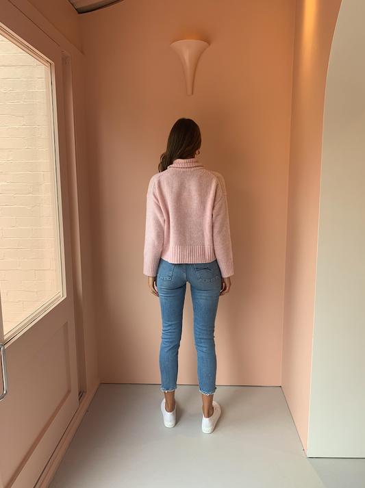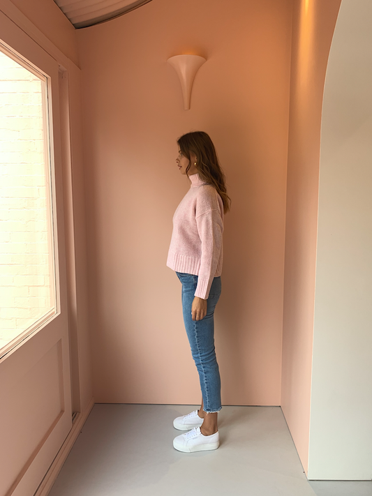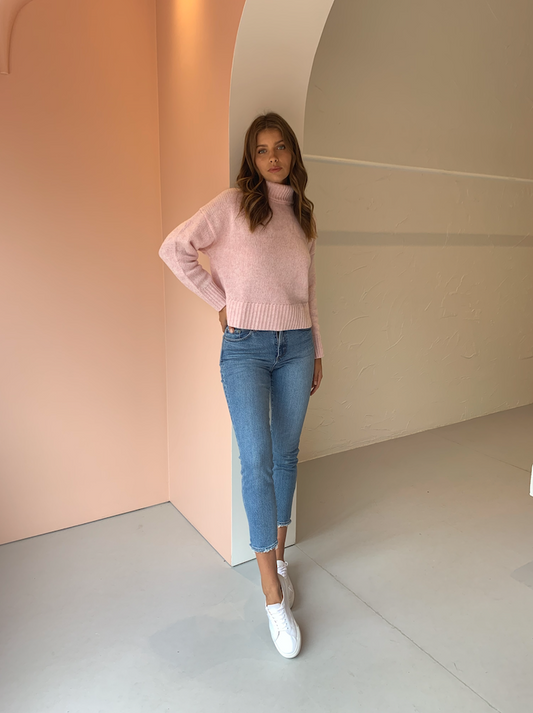 Ena Pelly Turtle Neck Cropped Knit in Rose