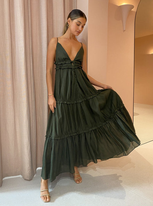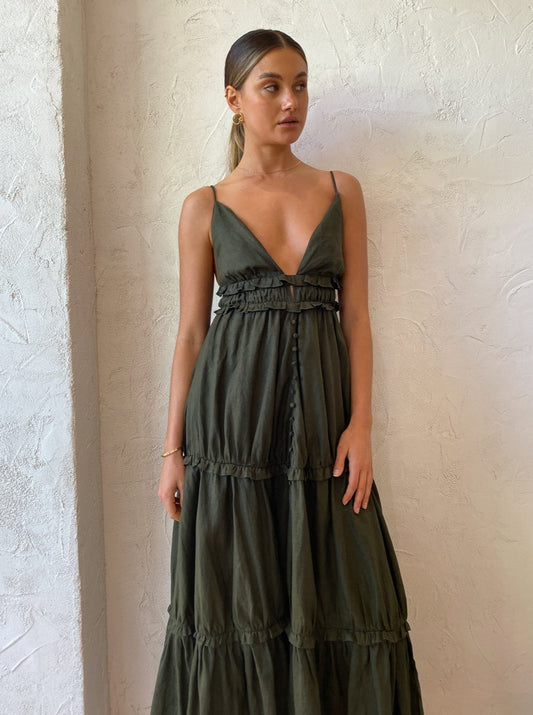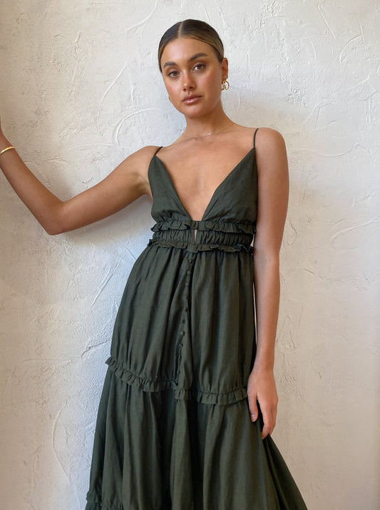 Joslin Liana 2.0 Linen Maxi Dress in Forest