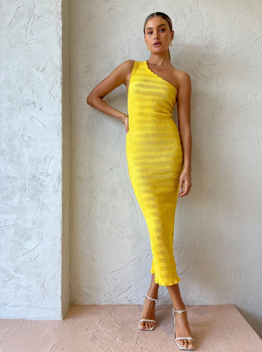 The cherished Gigi Smocking Gown by L'IDÉE WOMAN has been envisioned in Canary yellow for your Summer celebrations.