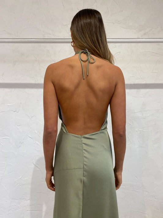A glamorous wrap style halter neck silhouette, the Zion Maxi makes a statement with its intricate front body draping. Cut on the bias and crafted from a gorgeous silky fabrication, this standout style allows Coco girls to glide through their special Coco moments.