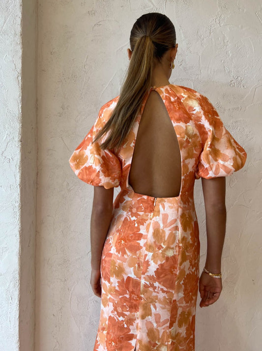 Detailed with an unexpected back bodice cutout and centre back split for fluidity, make a statement at garden party soirees, long lunches and winery getaways.