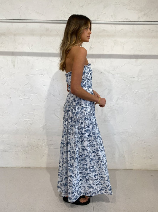 Fully lined, the Dimitri Strapless is crafted from a lightweight silk cotton blend in a vintage toiles de jouy inspired print that brings endless romance to our special Coco moments, birthday celebrations and wedding celebrations.