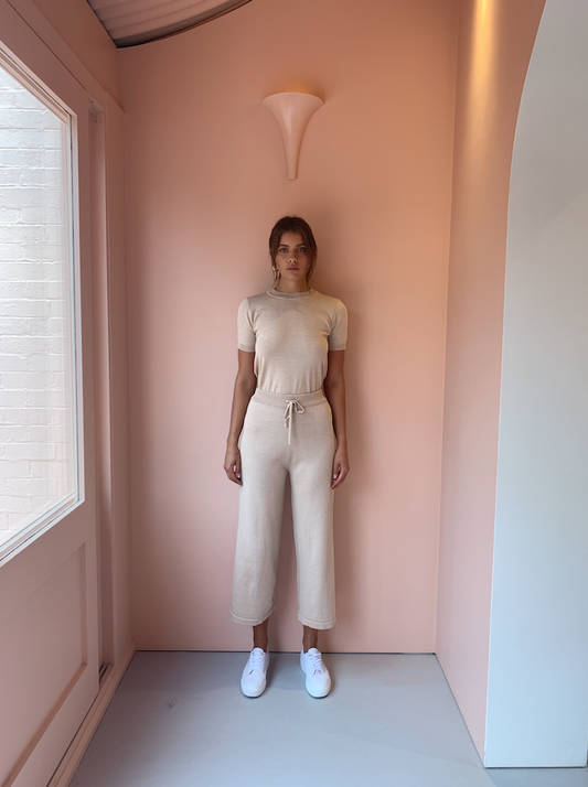 Exclusive to Coco and Lola, the Third Form Lounge knit set is a chic yet comfy addition to your wardrobe. This knit set is crafted from a fine knit fabric and features a classic t-shirt and wide leg culotte pant. Wear separately with exisiting pieces in your wardrobe.