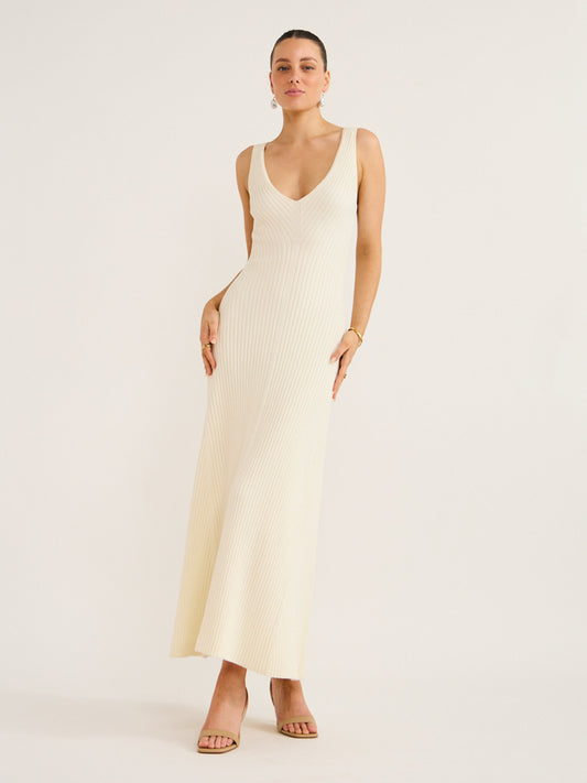Crafted from a signature rib knit fabrication, this midi dress is designed to be flattering and form-fitting through the bodice, with soft movement through the skirt.