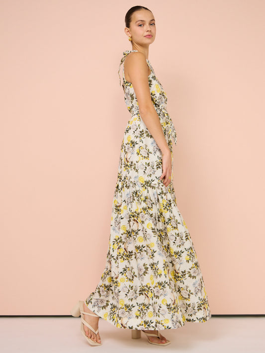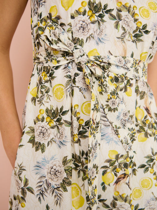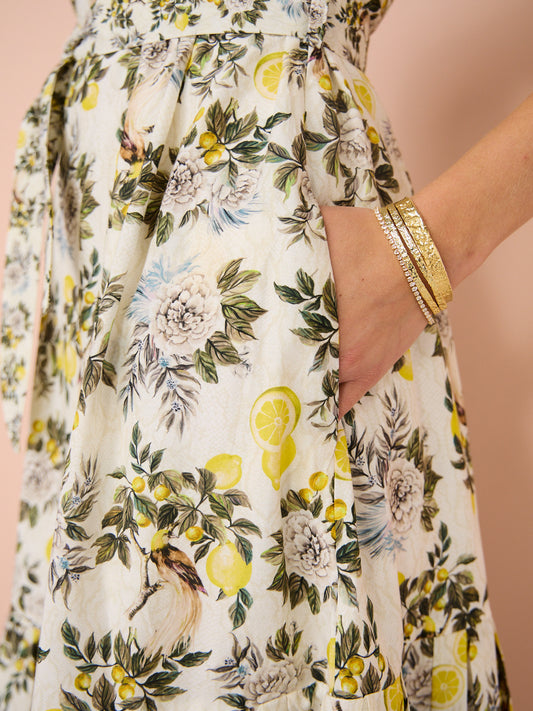 Float away to a summer getaway in the Aqua Blu Zoe Dress in Clementine Print.