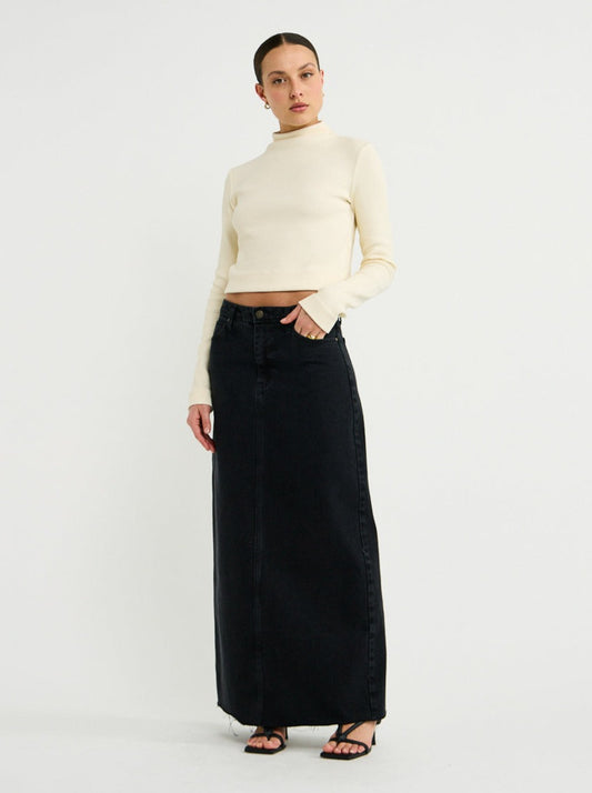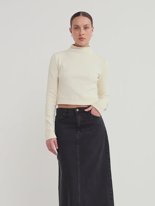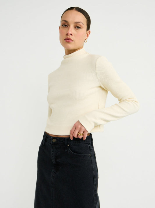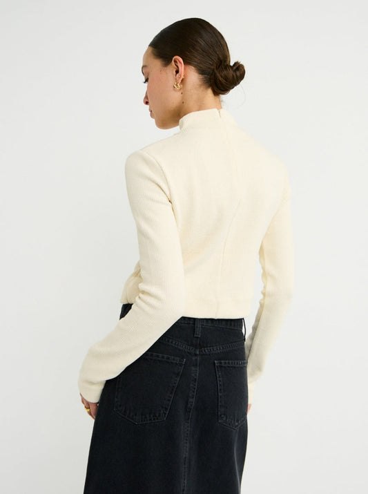 Crafted from a luxurious cream fabrication, this top features an elegant funnel neckline with an invisible zipper for a minimal look.