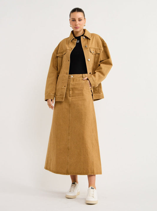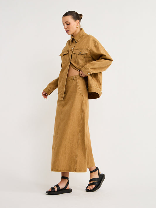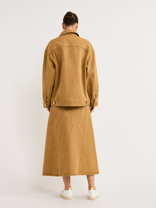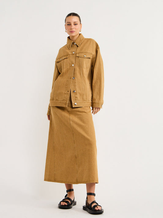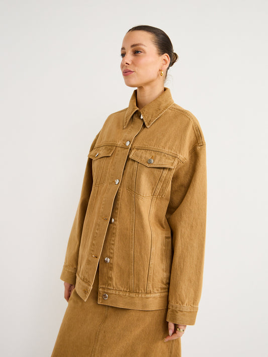 Introducing the Nabila Jacket in Camel, an elevated denim staple every modern wardrobe needs.