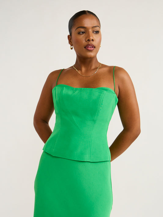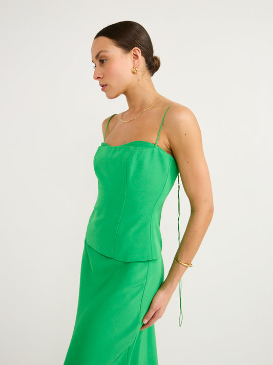 Viktoria & Woods welcomes the Saxophone Top in Kelly Green, evoking a sense of modern femininity.