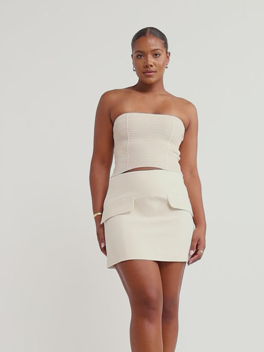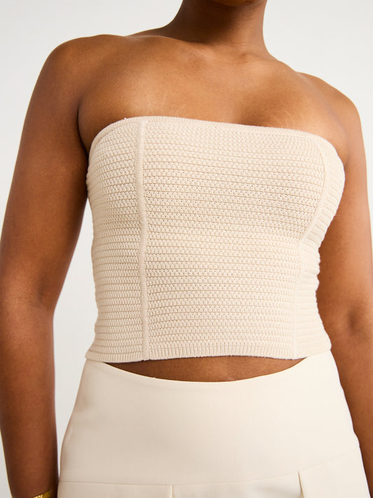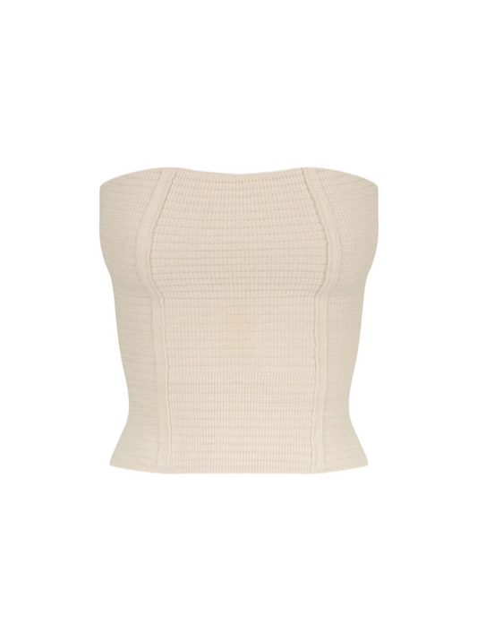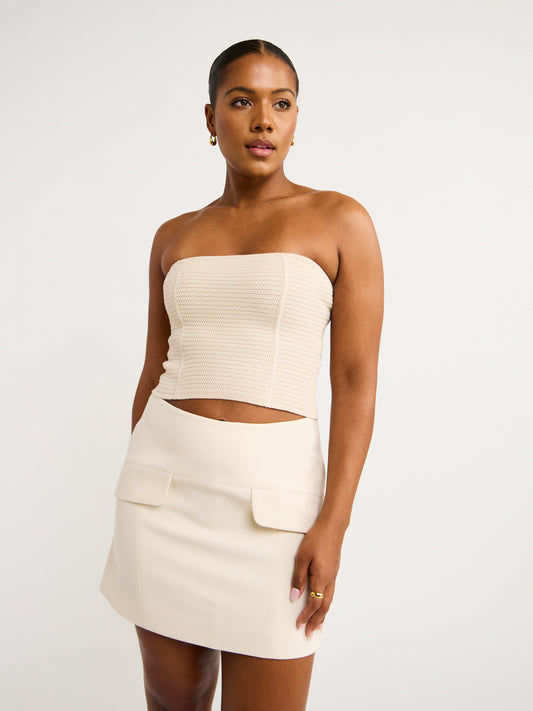 Crafted from soft, stretchy knit, this exquisite top features a strapless neckline,  panelled detailing and finished with a modern cropped fit.