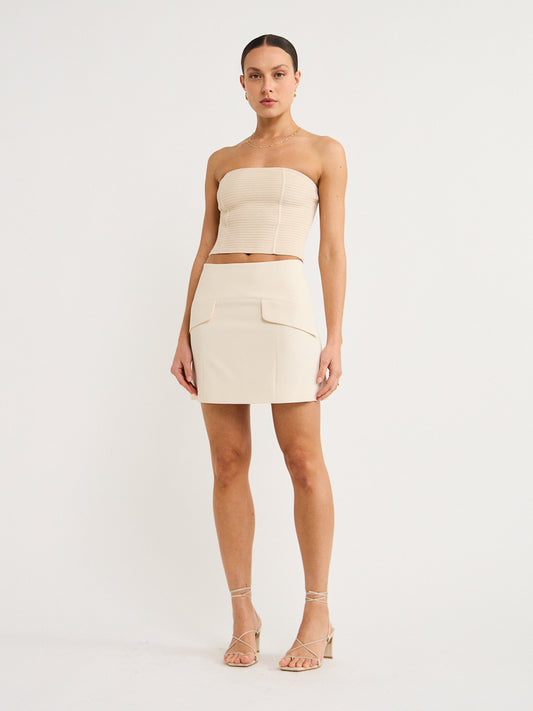 Modern elegance meets timeless wardrobe essentials with the Shona Joy Eve Pannelled Tub Top in Bone.