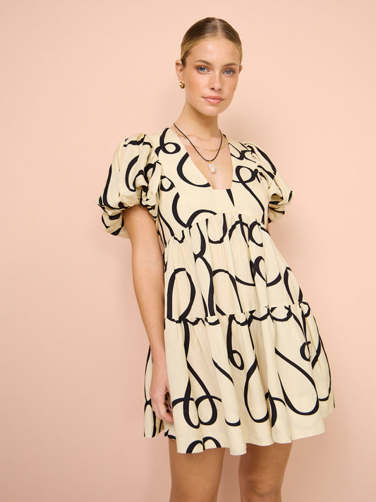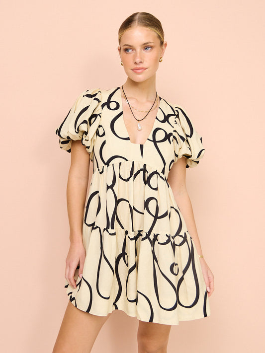 Crafted from a luxe linen blend fabrication, this mini dress features a relaxed fit, and a tiered mini length skirt with soft volume.
