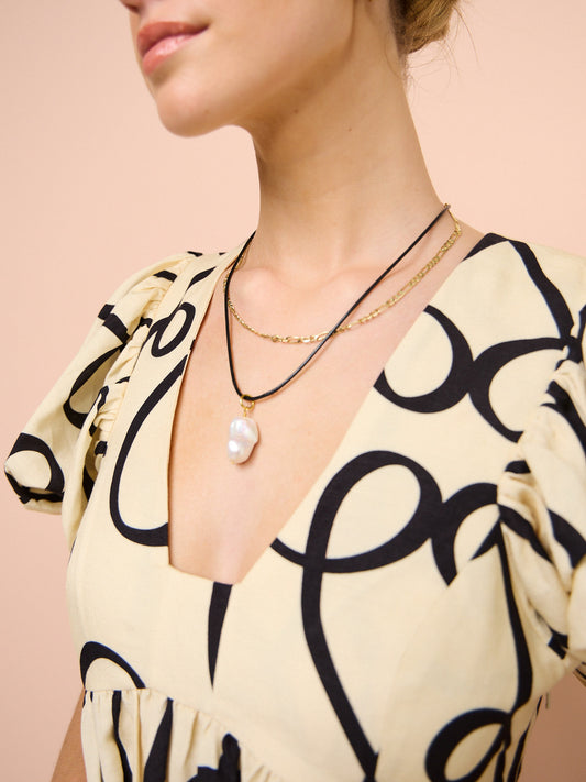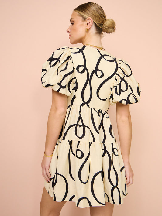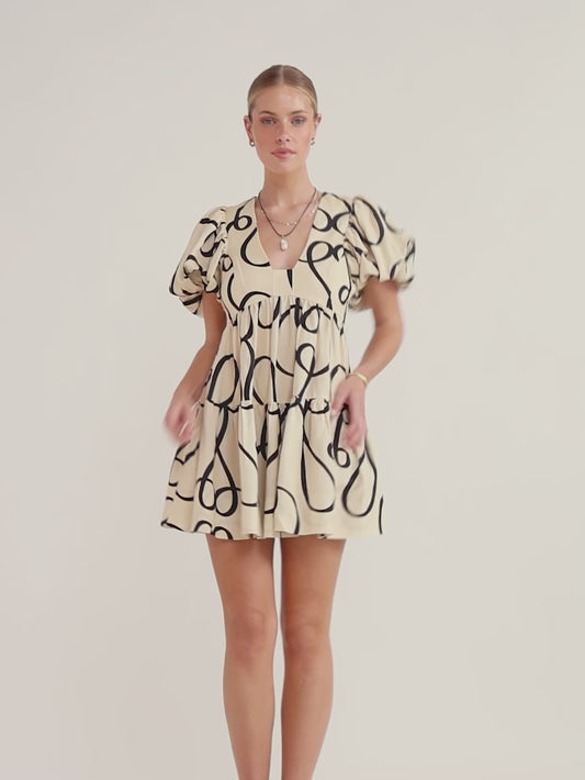 The short puff sleeves and timeless contemporary print are the perfect pairing to soak up the sun and to add a chic touch to your wardrobe.