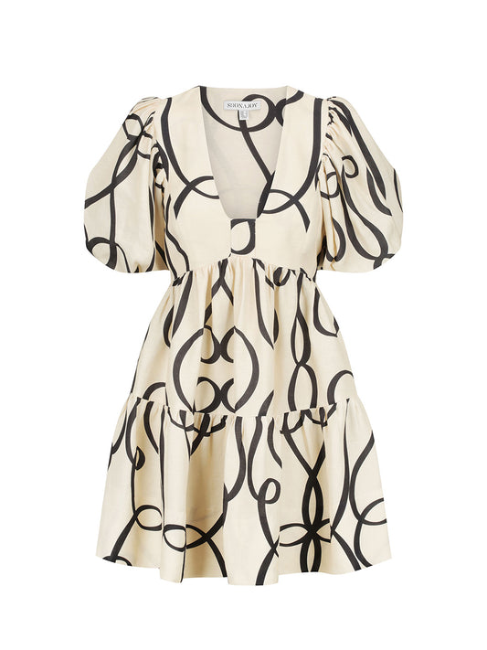 Shona Joy Vietri Short Sleeve Mini Dress in Bone/Black