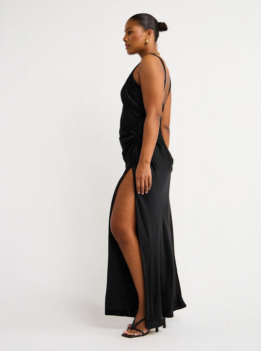 The Anna Quan Etta Dress in Ink offers an exquisite, chic take on formal wear.