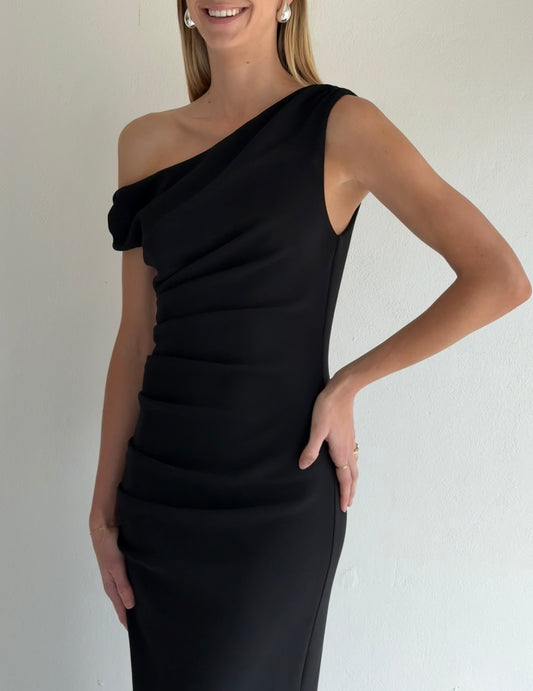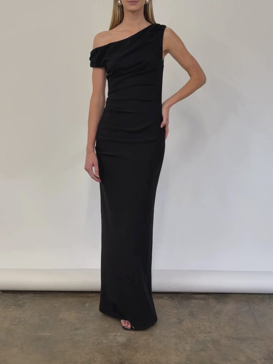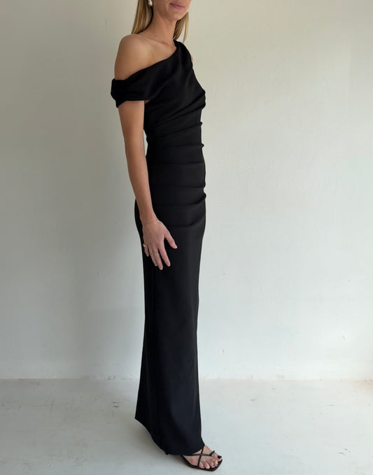 The Sophia Maxi Dress in Black is made from a heavy weight texture crepe with stretch.