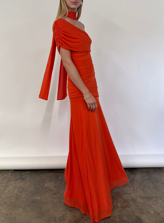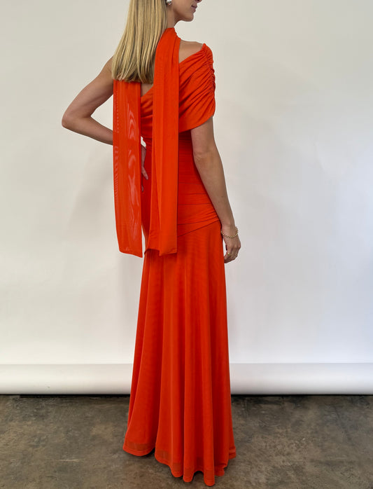 Step into effortless elegance with the By Nicola Fiesta Off Shoulder Maxi Dress in vibrant Fiesta!