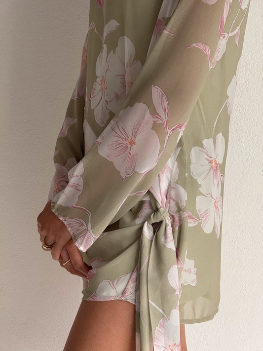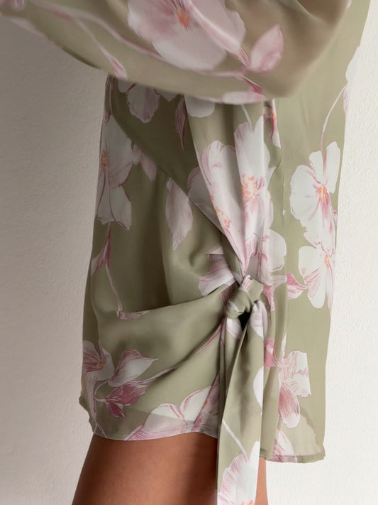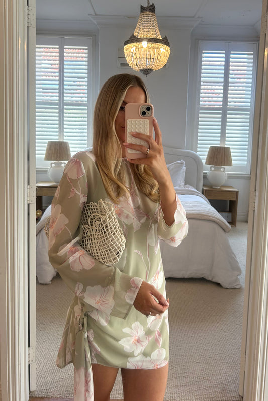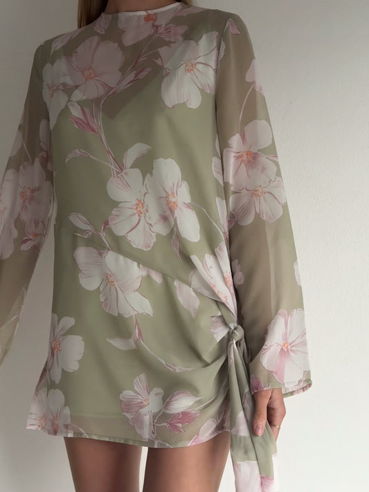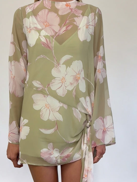 The By Nicola Elodie Mini Dress in Peppermint Floral  features a left side twist detail for shape through the waist to the hip.