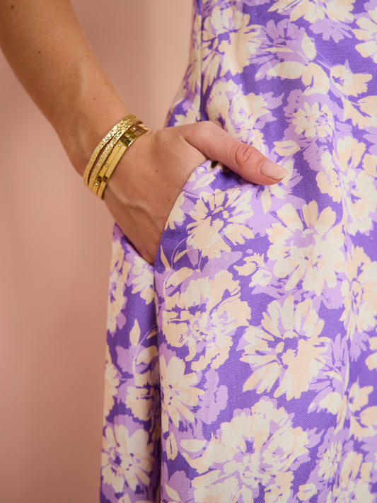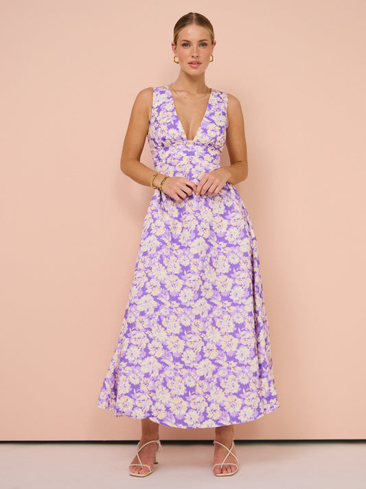 Ideal for weddings, cocktail hours, and other special occasions, the flattering silhouette and sweet violet print will ensure you look your best.