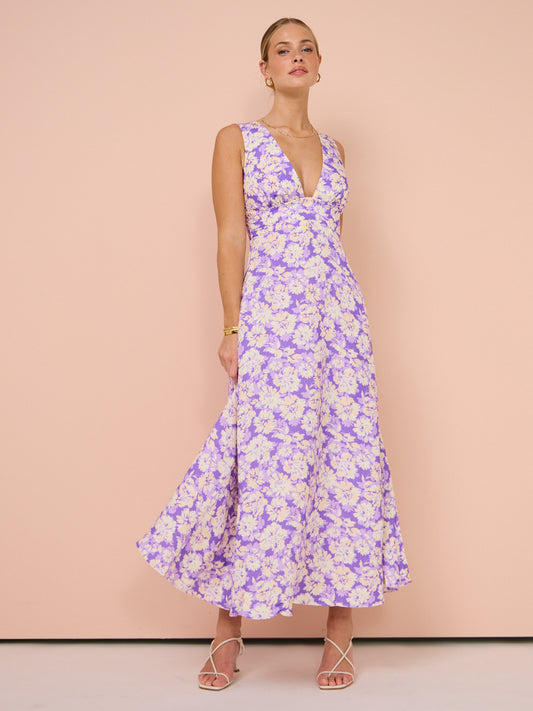 Introducing the Acler Ardanary Maxi Dress in Violet Imprint, a graceful choice for elegant occasions.