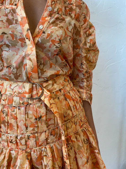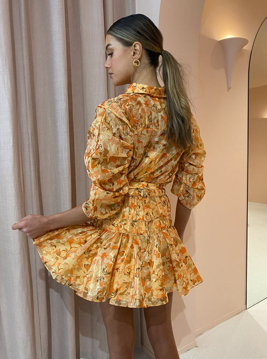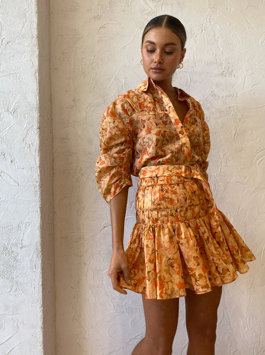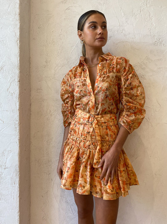 Brighten your days with the golden Peach Parfait print of Acler's Bonhill Shirt.