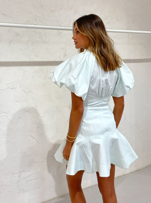 The Acler Dalbury Dress in Mist is the ultimate statement mini for the festive season ahead.