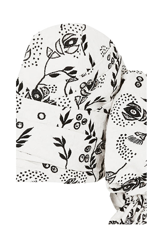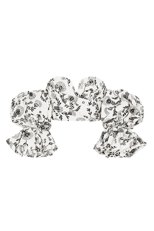 Acler's 'Henning' cropped linen top is designed with a strapless silhouette with short puffed sleeves and ruffle detailing throughout.