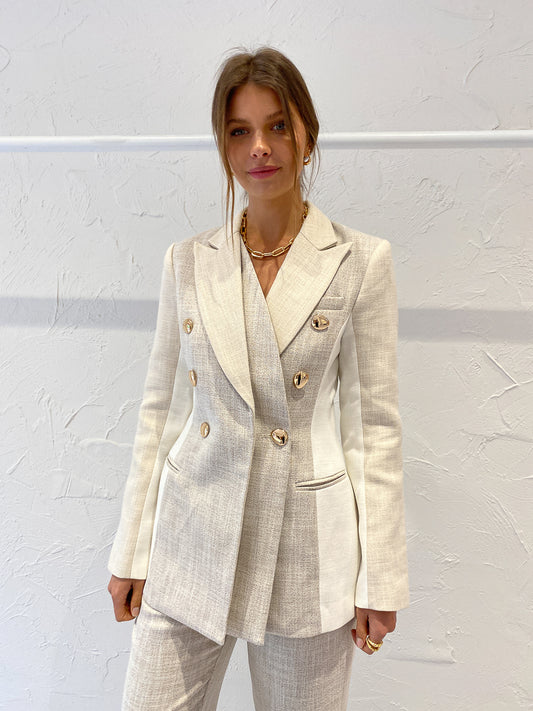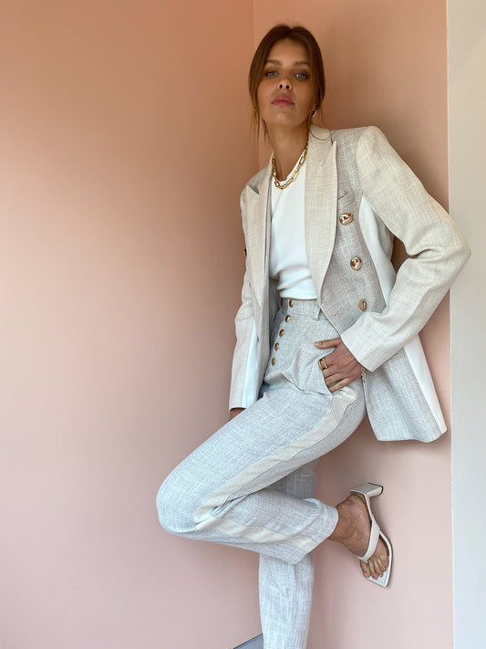 Coco Styling Tip: We love a strong and bold matching suit. Pair with the Kings Pant and finish with the Alias Mae Noah Heel. Layer the SIR Ingrid Tank underneath for a relaxed effortless look.