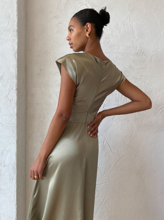 The Plympton Dress in Moss by Acler perfectly blend rich hues with effortlessly elegant silhouettes.