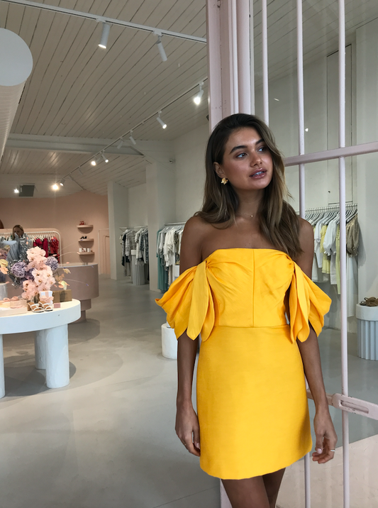 The perfect Summer mini dress! The Acler Selkin dress in Citrus is a sophisticated piece crafted in soft linen blend fabrication. This simple but elegant pieces are a must-have!
