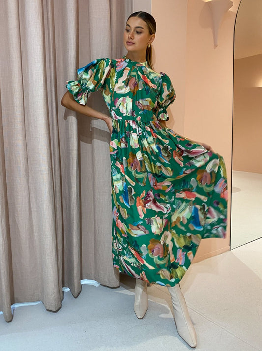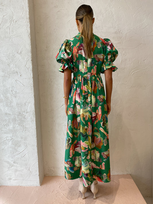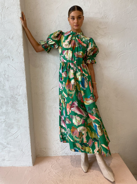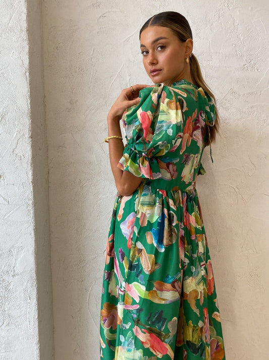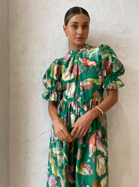Brighten your occasion wardrobe with Alemais' Arlo Puff Sleeve Midi in Forrest.